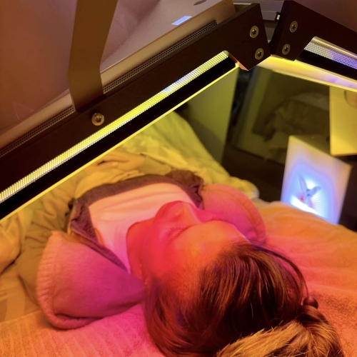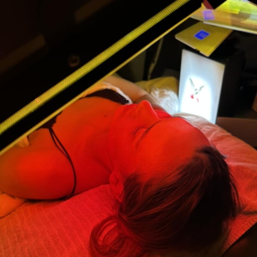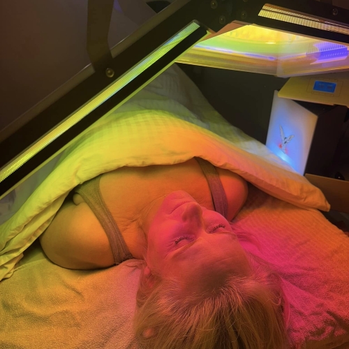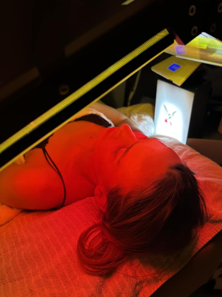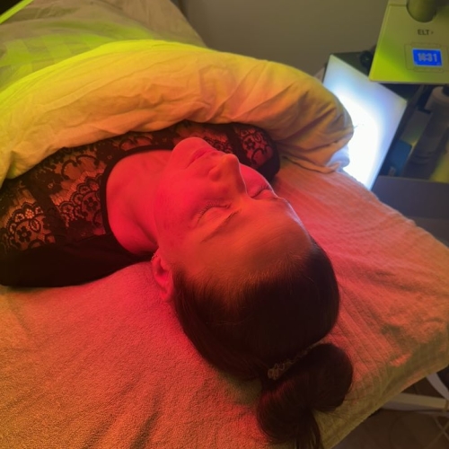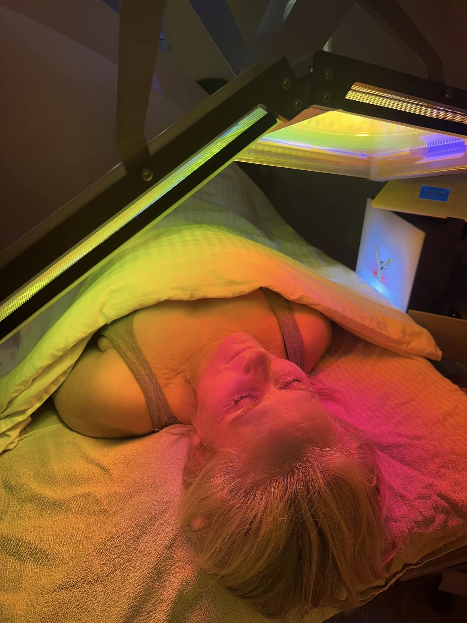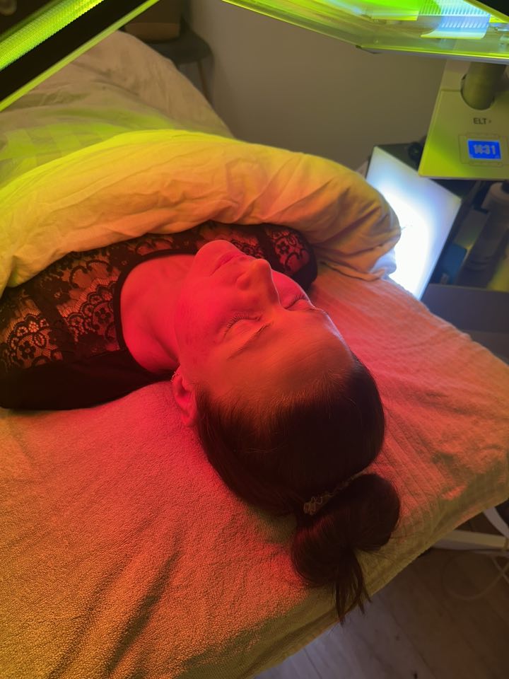 En skøn og afslappende behandling hvor varmen breder sig i først ansigt, så i kroppen og man får en dejlig behagelig følelse alt imens lyset arbejder på nedenstående.