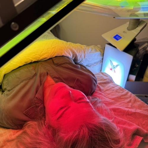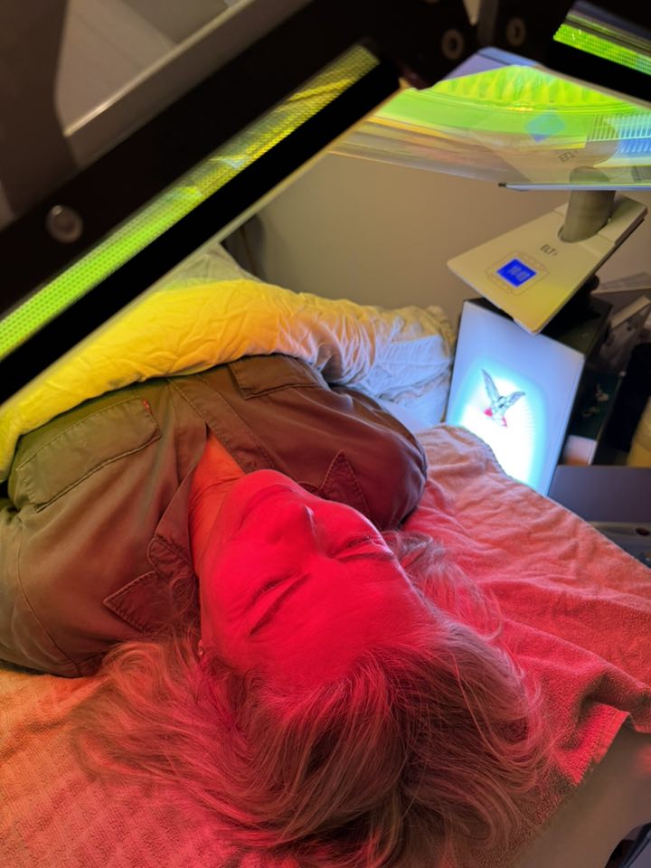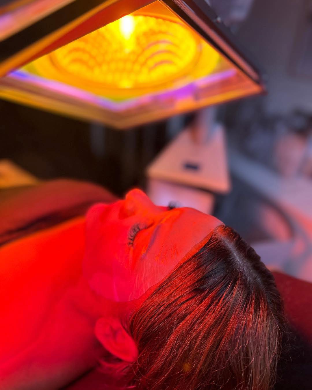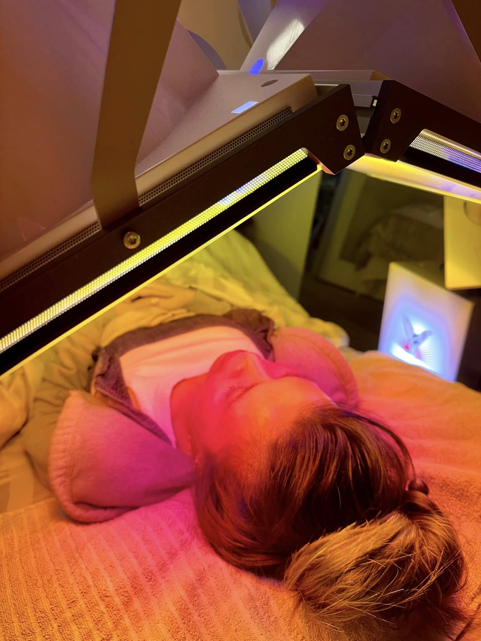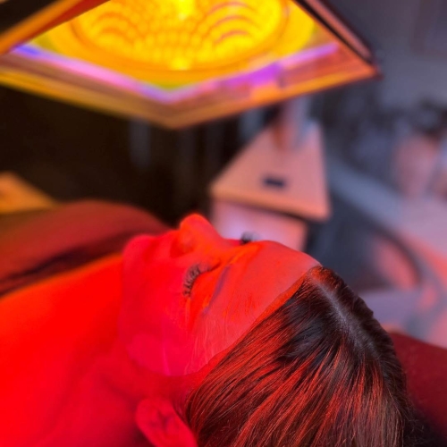En skøn og afslappende behandling hvor varmen breder sig i først ansigt, så i kroppen og man får en dejlig behagelig følelse alt imens lyset arbejder på nedenstående.
