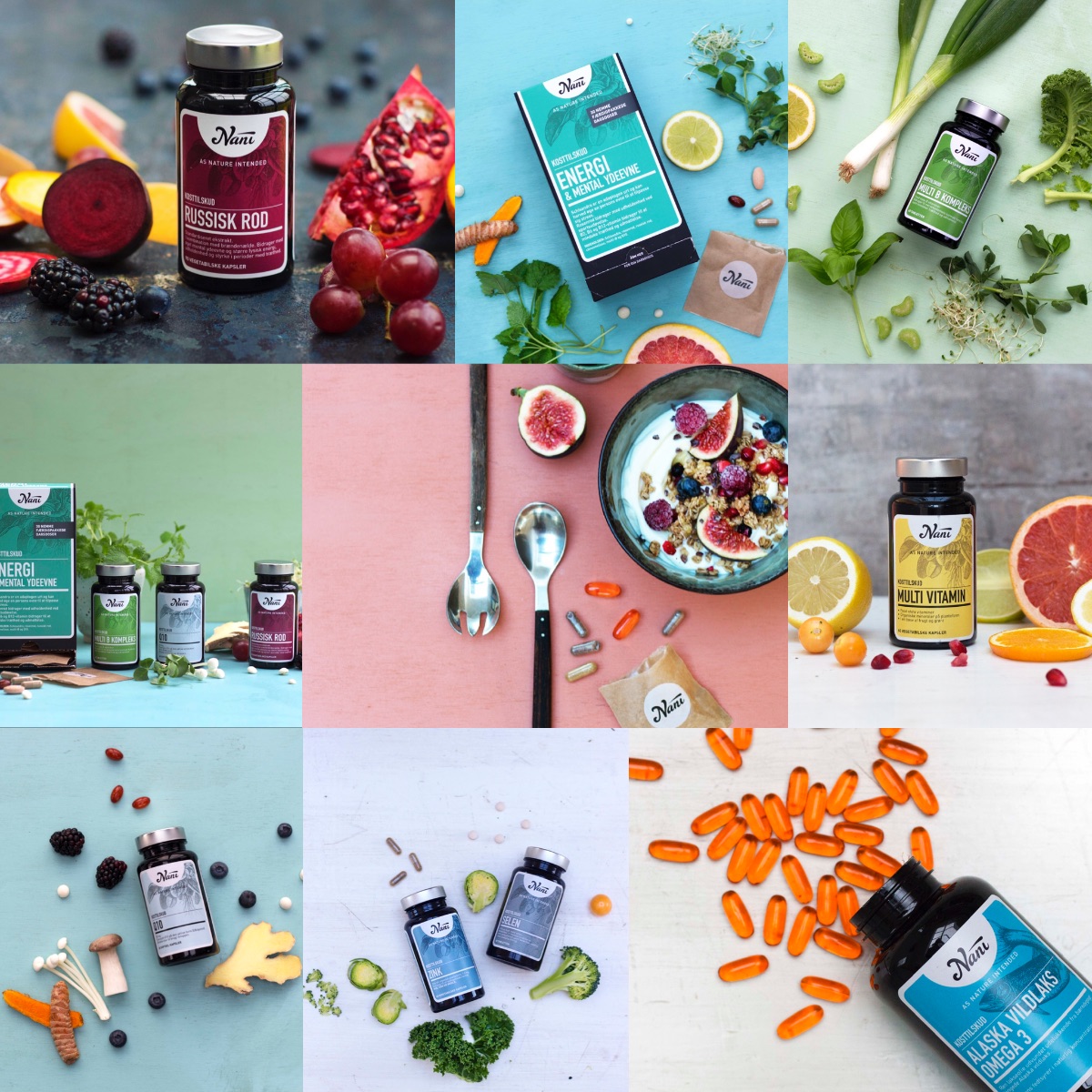 NANI’s naturlige kosttilskud på planteform, også kaldet whole foods, er ganske enkelt mad, fordi de består udelukkende af planter. Her er en nøje udvalgt rækker af plantearter, der fra naturens hånd har et højt indhold af særlige vitaminer eller mineraler, disse er nænsomt tørret og indkapslet til dig. Dette gør sig bl.a. gældende for Nani´s calcium, der består af en rødalge fra Island, rig på både calcium, magnesium og sporstoffer, og blæretang, rig på jod, samt økologiske Acerola kirsebær, der er spækket med naturlig C vitamin.